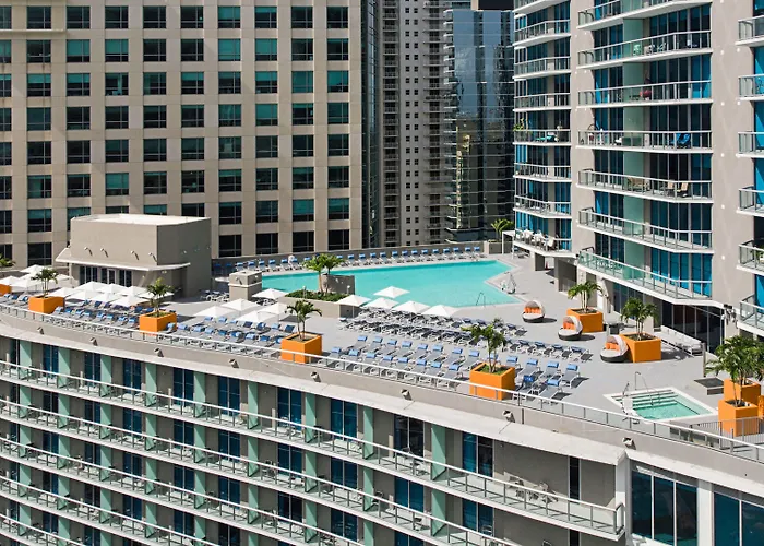 Hyatt Centric Brickell Miami is a lifestyle hotel housed in a modern condominium tower with a curvaceous glass façade, offering elegant accommodations and an outdoor swimming pool. Guests benefit from a restaurant, a bar, and a fitness center, making it a suitable choice for urban exploration.